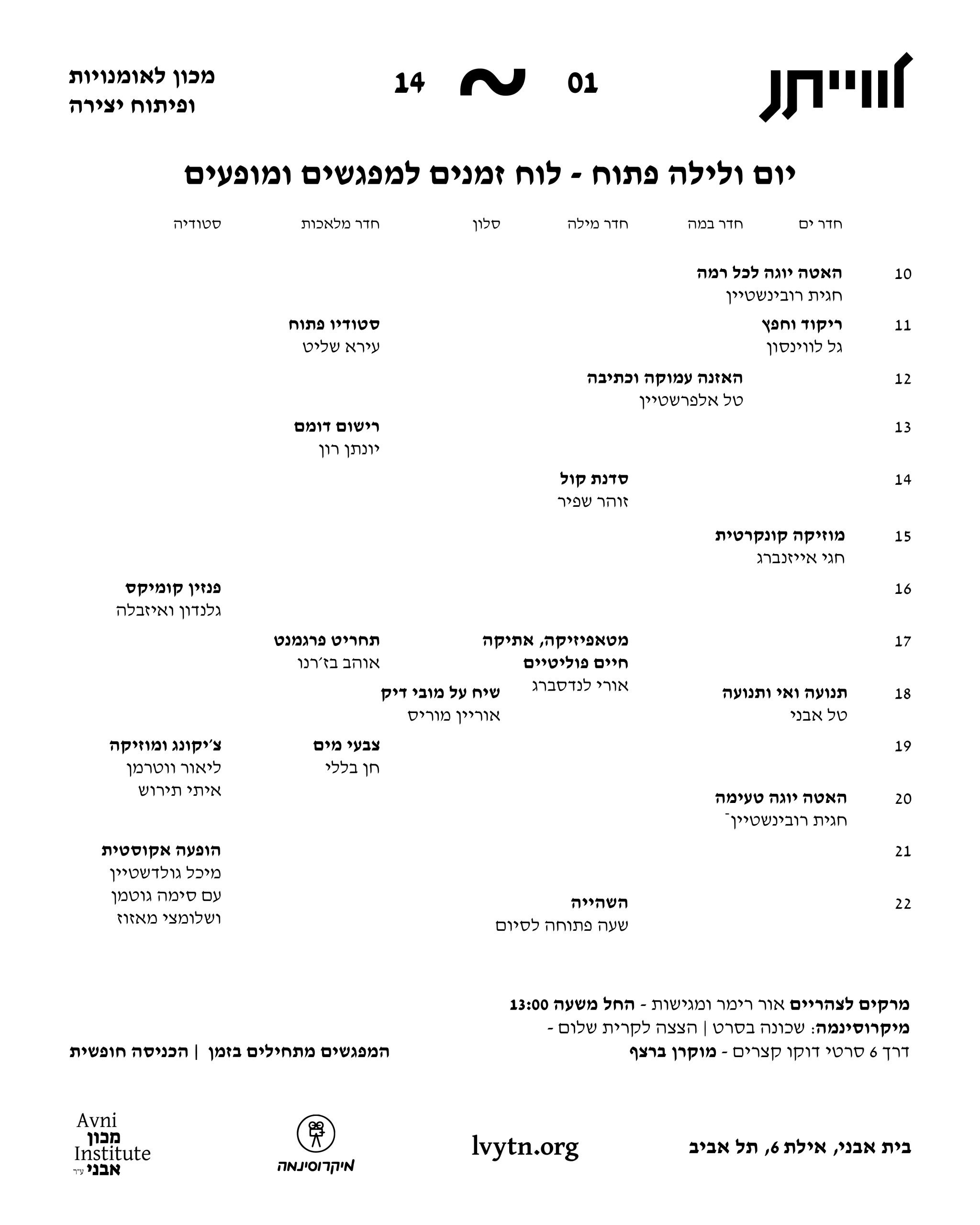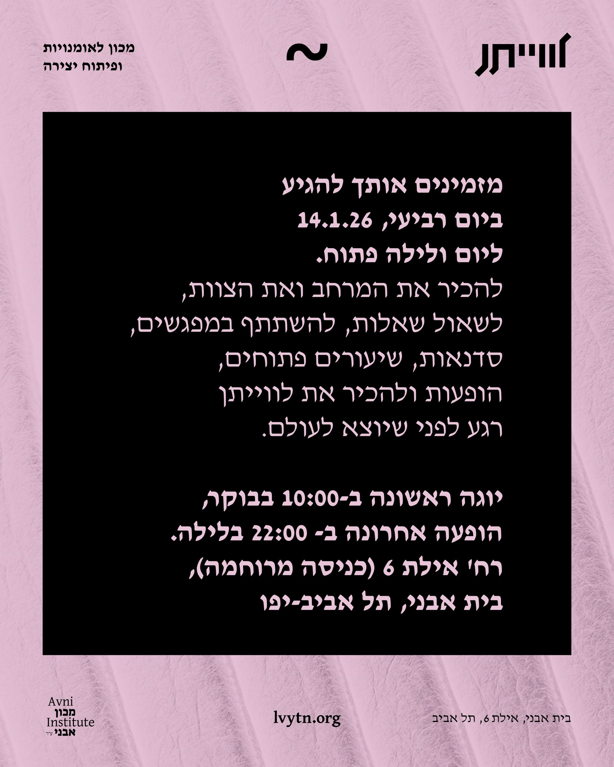 אי שם באמצע ינואר 2026, יום לילה פתוח (הראשון!) שהזמין לבוא ולהכיר חלק מהתכנים והנפשות הפועלות במקום.