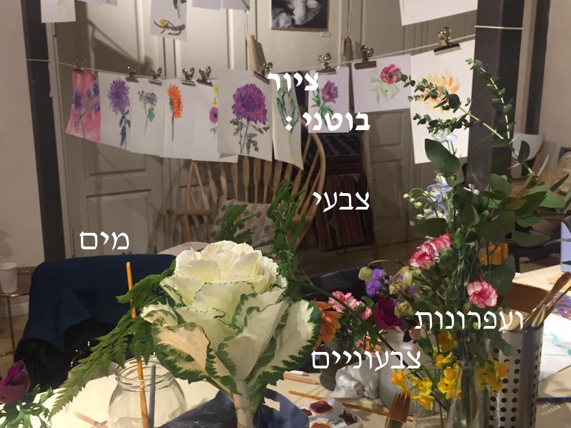 ולאחריו ציור בוטני עם צבעי מים, התבוננות ויצירה ביחד עם חן בללי שמביאה פרחים מעולם אחר.